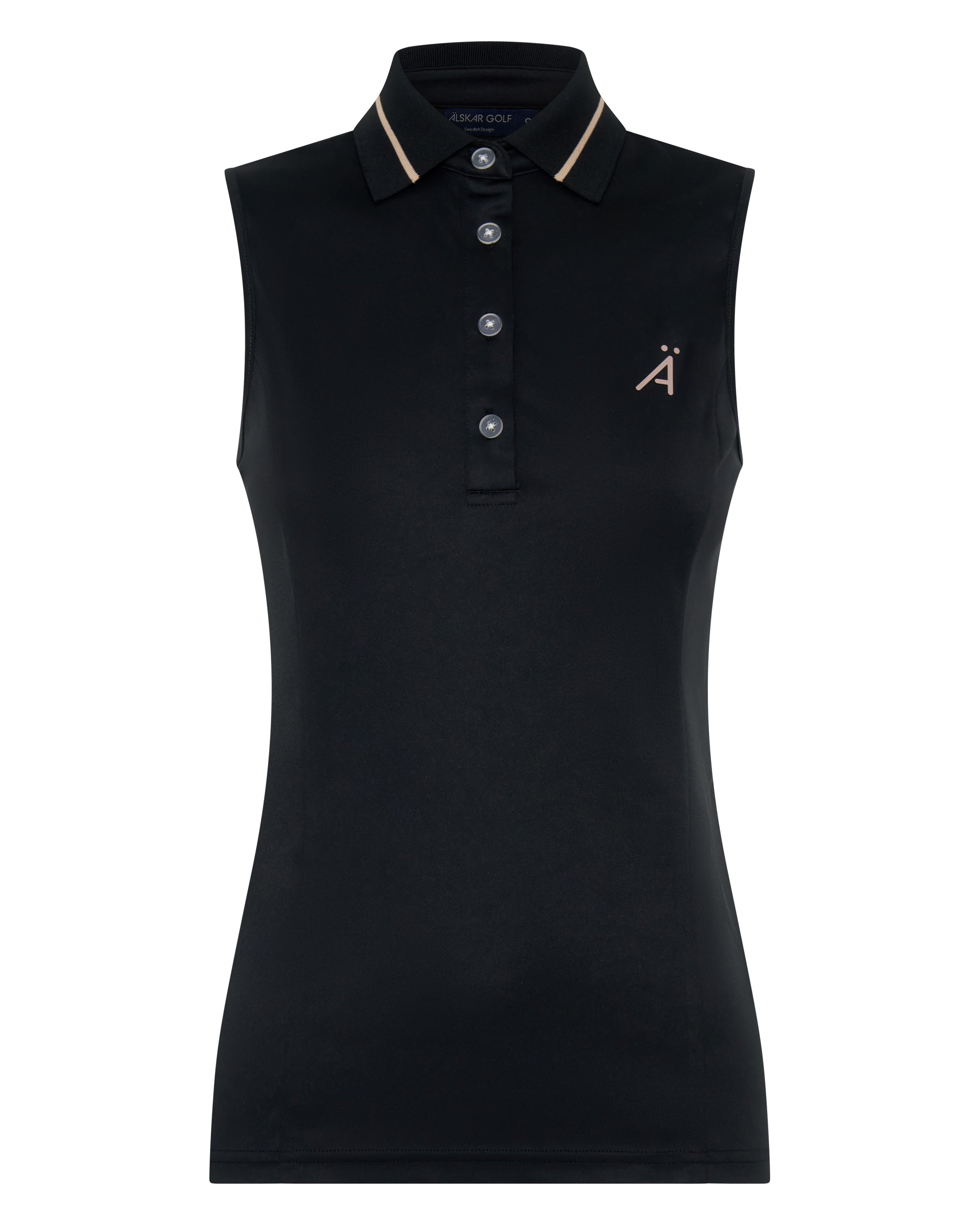 Swing effortlessly while looking nimble in our form fitting Lydia sleeveless top. Features a neat collar, four-button placket this is an essential in any golf wardrobe. Made with a silky soft, 4-way stretch, moisture-resistant and quick-drying fabric that keep you cool on the fairway.